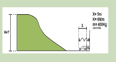 - Considerando que o carrinho tem uma massa de 200 Kg, calcular sua velocidade no ponto B.